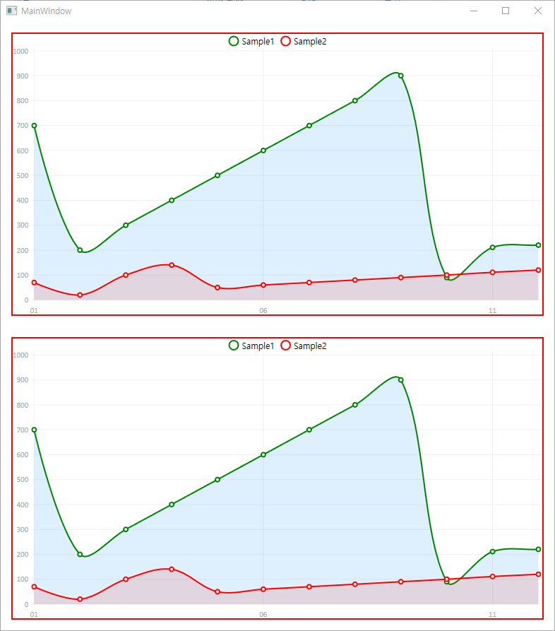 [WPF] LiveCharts.WPF를 이용한 차트 그리기 (In xaml / In code)
